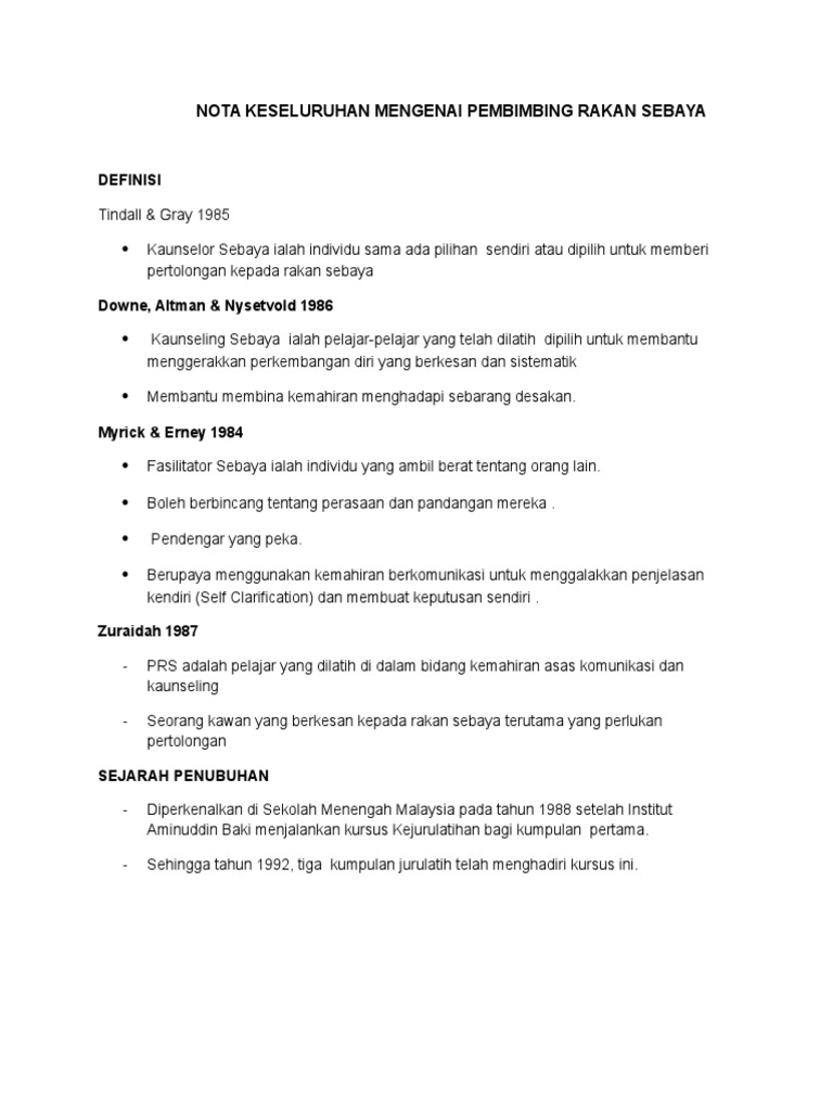Bidang tugas:i)melakukan aktiviti kerohanian antara prs. Pengaruh orang dewasa berkurangan kepada remaja.pengaruh rakan sebaya. Tugas guru adalah mulia kerana menyambung sunnah para nabi dan meneruskan. Sistem pengurusan perkhidmatan pembimbing rakan sebaya yang cemerlang dan berkualiti. Definisi pembimbing rakan sebaya ialah seorang pelajar yang telah dilatih dalam bidang senarai tugas prs 13.1.